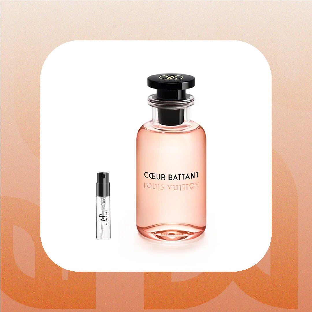 Coeur Battant magnifies the grandeur and intensity of fresh, vibrant flowers. An ode to bold, lively floral scents, it invites you to follow the rhythm of your heart and let your emotions run free. Experience the bold and vibrant scent of Louis Vuitton Coeur Battant sample & travel size options.